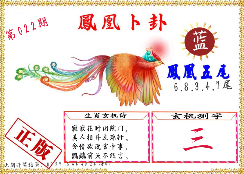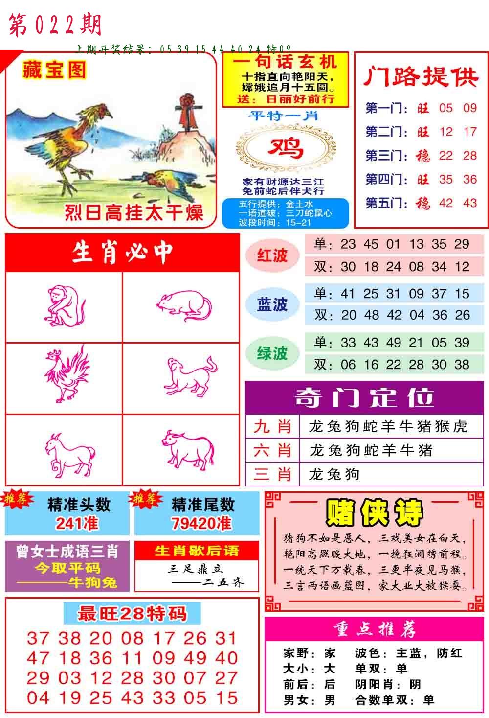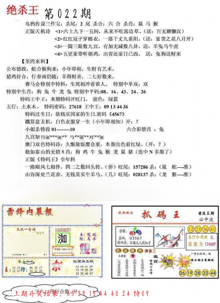022期绝杀1.肖1.尾 【鸡肖2尾】 开 ??????? |