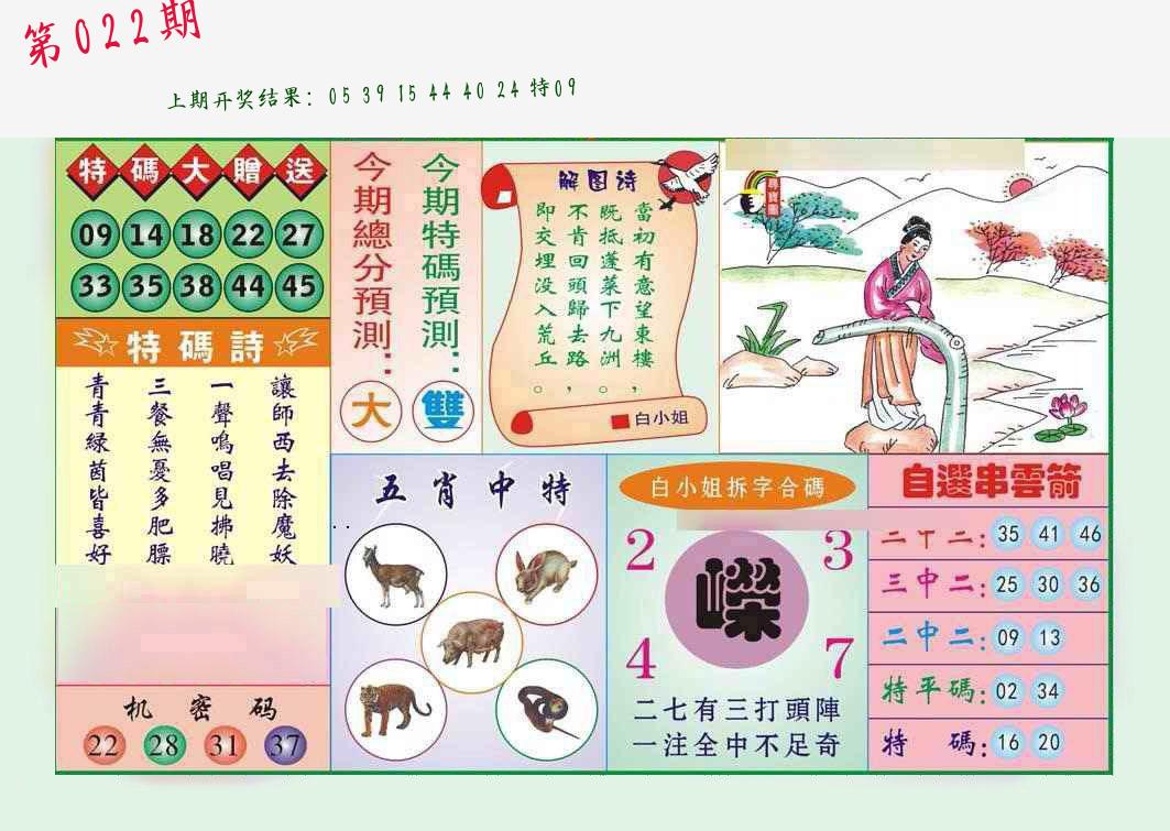 021期琴棋书画 【琴书画】 开 09鸡对 |