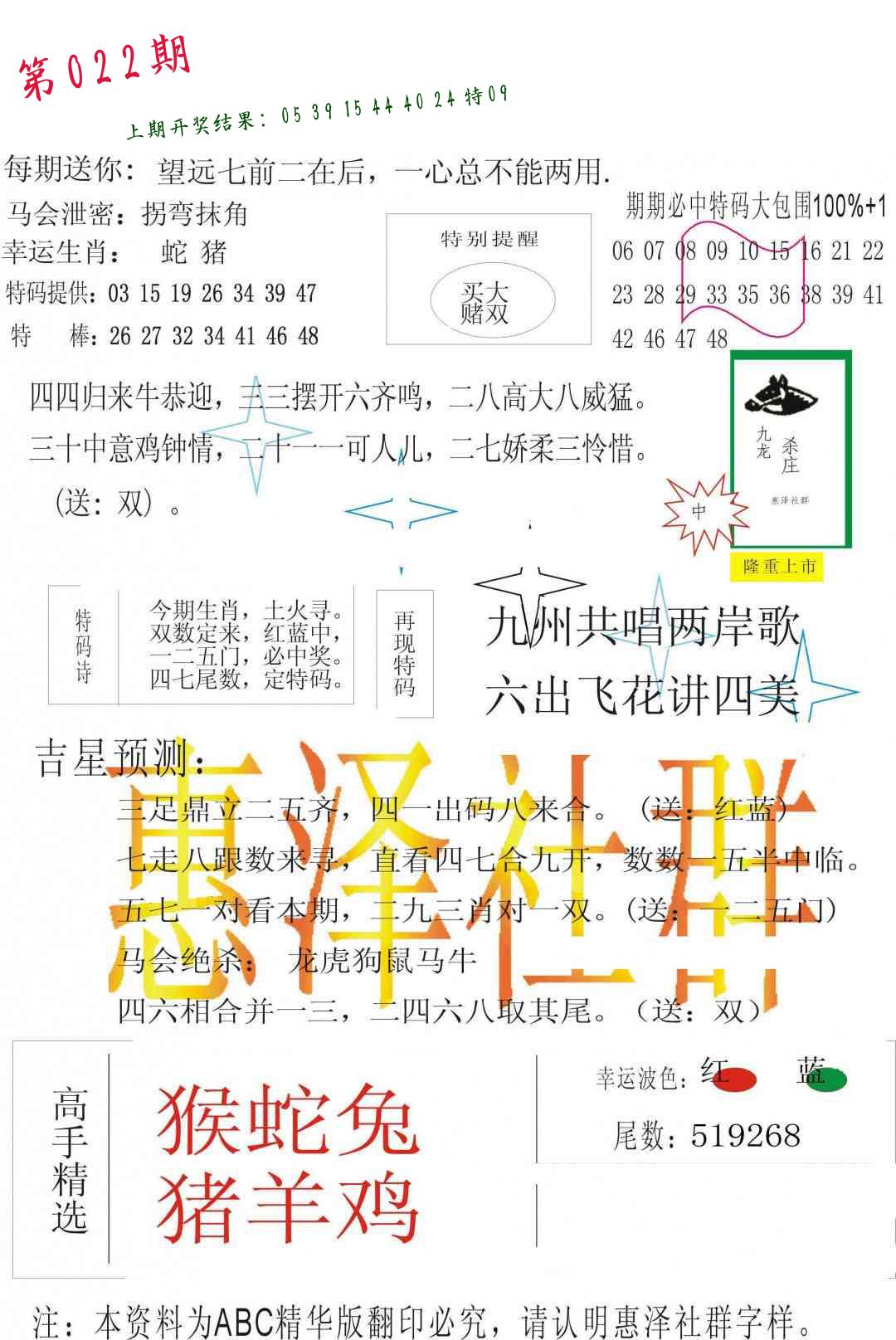 | 022期推荐七肖: 羊猴蛇牛兔龙鼠 -平均压 |