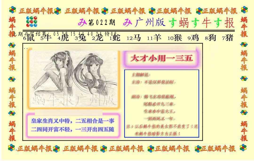 018期绝杀一波 【蓝波】 开 01蛇对 |
