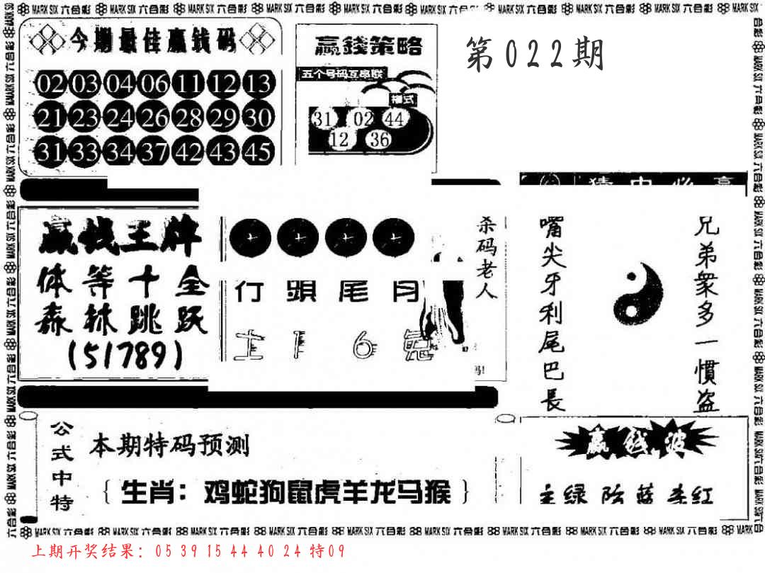 | 022期推荐五肖: 羊猴蛇牛兔 ~~稳准狠 |