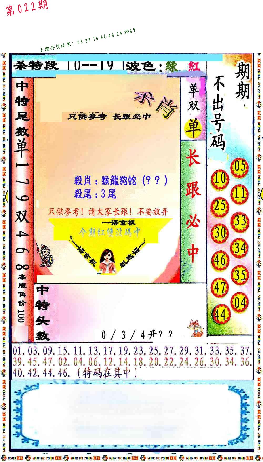 022期绝杀1.肖1.尾 【鸡肖2尾】 开 ??????? |