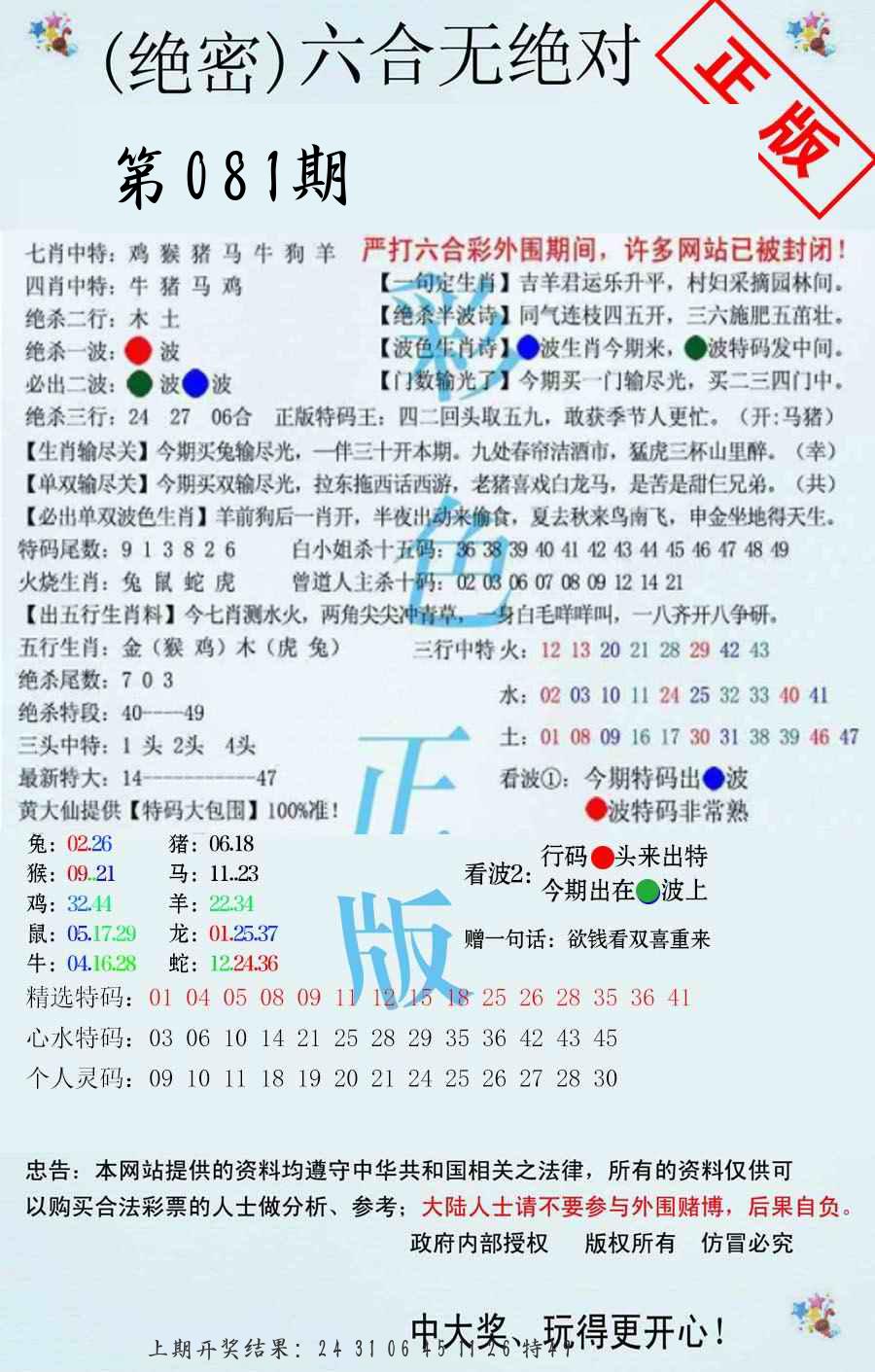 081期必中九肖 (??????)